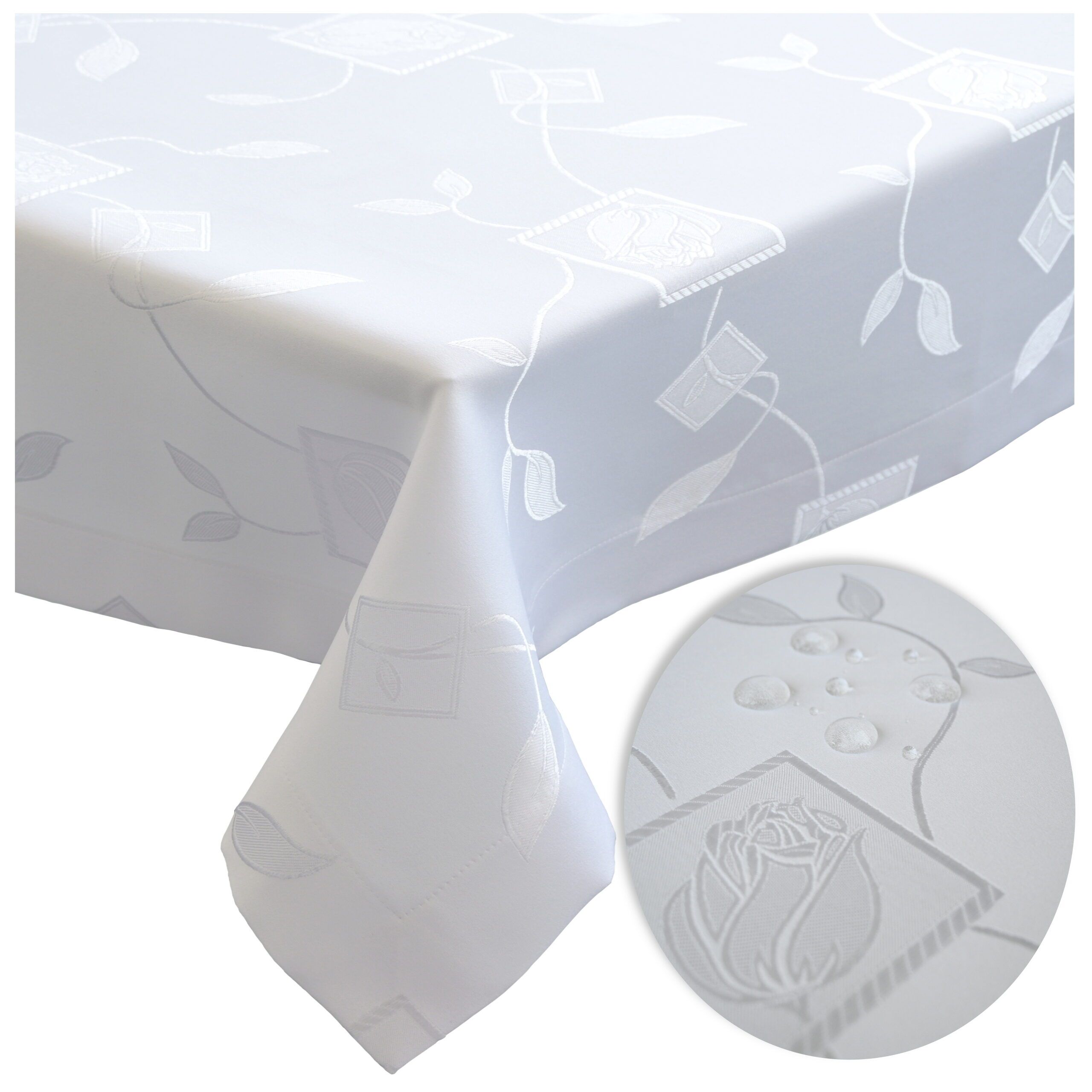 Prezentowany obrus plamoodporny w kolorze białym wykonany jest w 100% z wysokiej jakości poliestru, pokrytego apreturą teflonową, która skutecznie chroni tkaninę przed wchłanianiem płynów i ułatwia czyszczenie. Dzięki temu rozlane napoje czy drobne zabrudzenia nie wnikają w strukturę materiału – wystarczy przetrzeć powierzchnię wilgotną ściereczką.